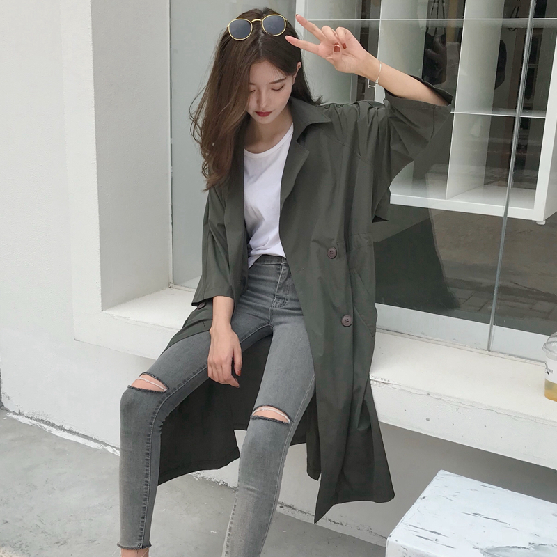 / 春秋新款復古港味新款寬松顯瘦系帶七分袖中長款過膝風衣外套女潮