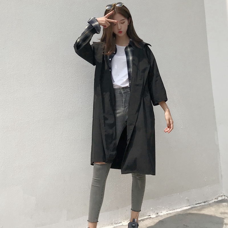 風衣女中長款韓版秋季2018新款純色系腰寬松復古外套(有里布)潮
