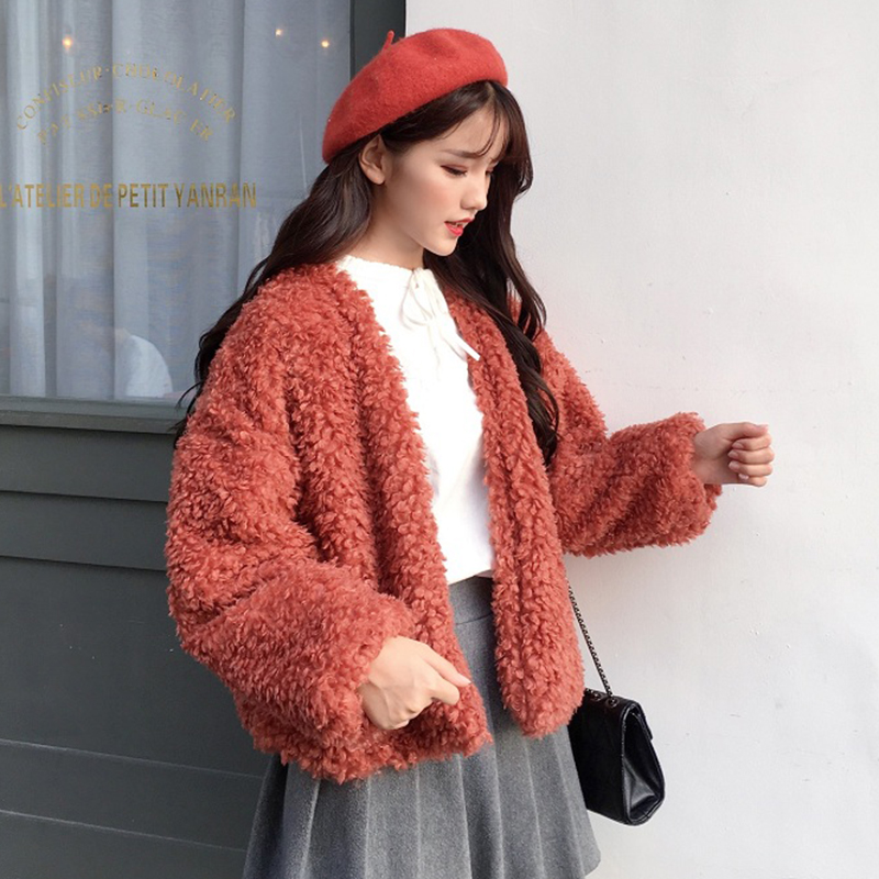 / 秋冬2018新款女裝韓版學生寬松羊羔毛保暖短外套黑色毛毛長袖上衣