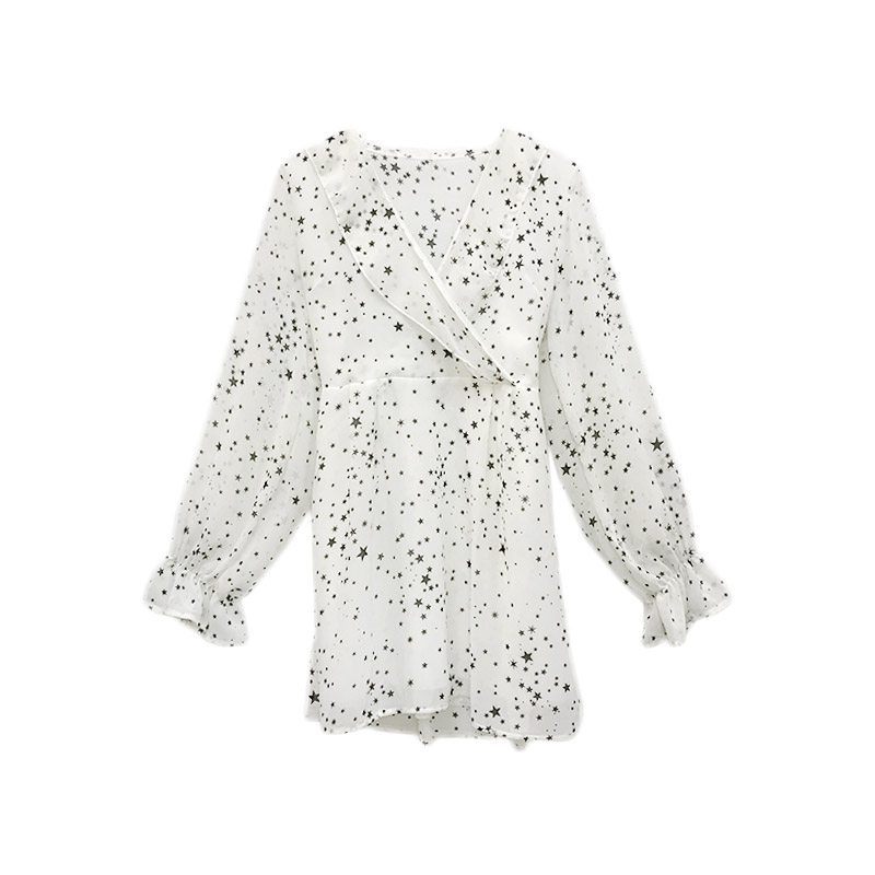 / 秋裝女2018新款韓版百搭荷葉邊顯瘦不規則v領收腰星星雪紡連衣裙
