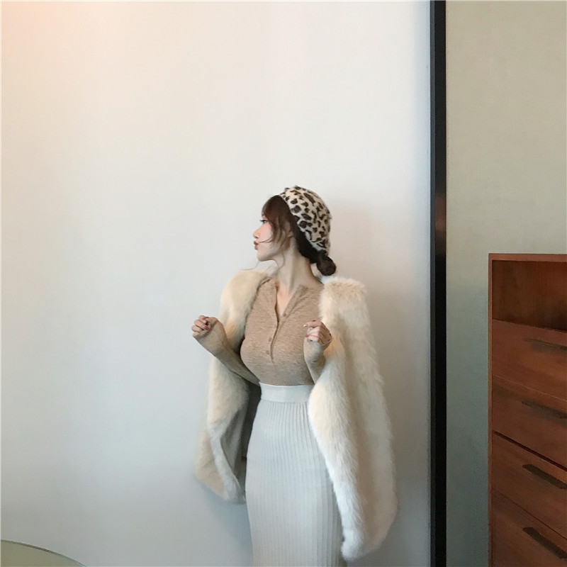 女神套裝秋新款溫暖毛毛馬甲皮草外套+絲絨波點印花連衣裙兩件套