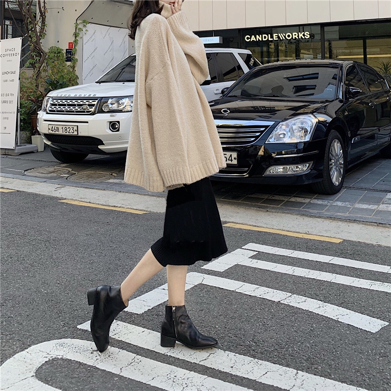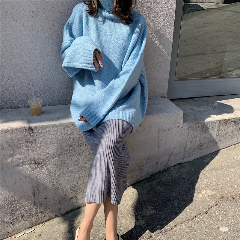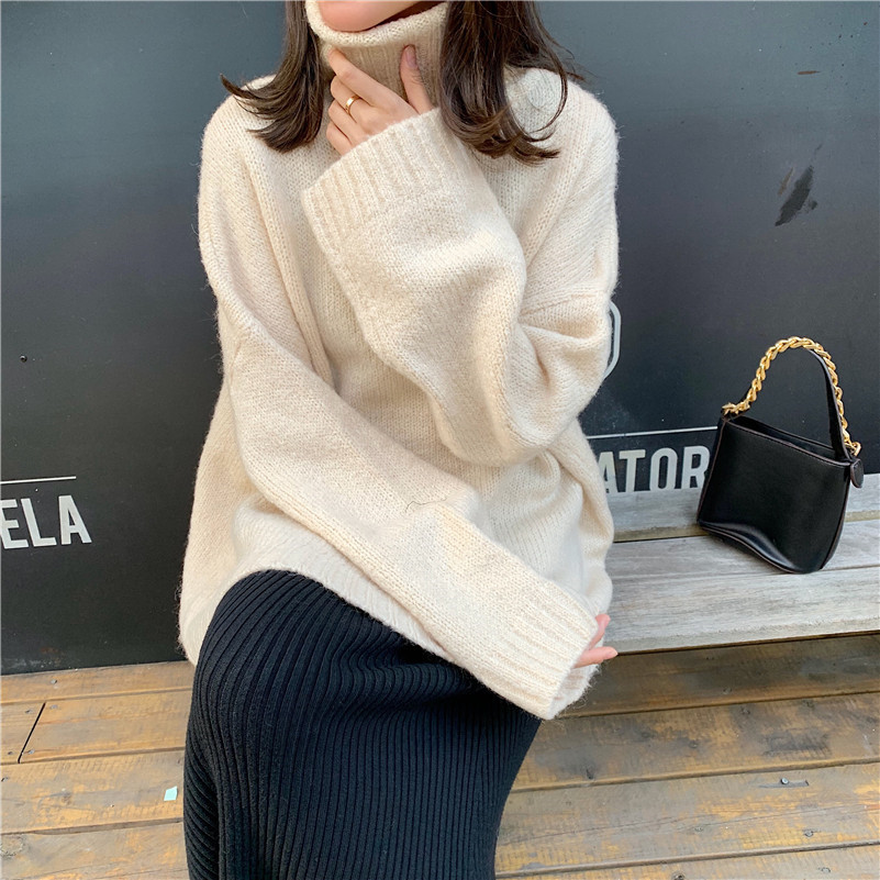 簡約百搭純色寬松高領毛衣女2018新款加厚保暖秋冬套頭針織毛線衫