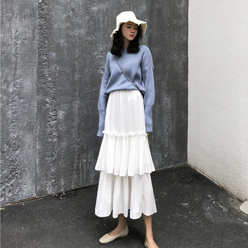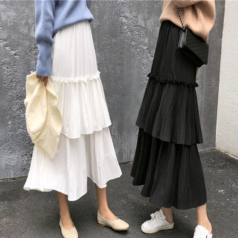 / 仙氣質蛋糕裙秋裝女2018新款顯瘦高腰a字半身裙百搭黑色中長裙子