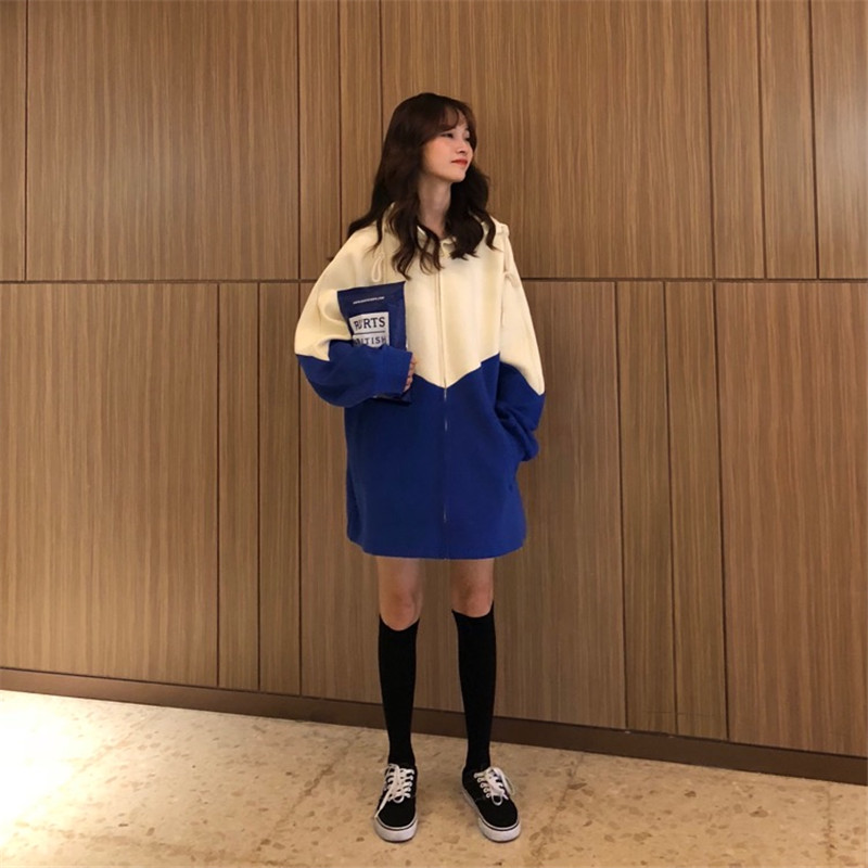 早秋衛衣2018新款女長袖韓版寬松秋款百搭顯瘦拼接拉鏈開衫外套潮