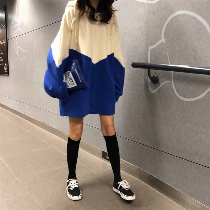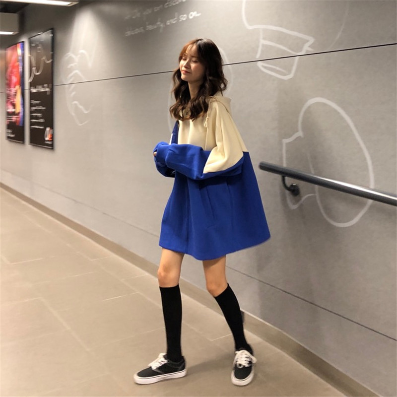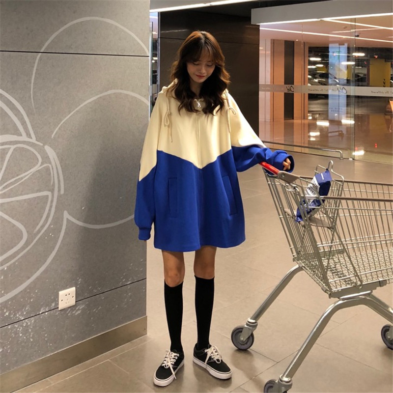 早秋衛衣2018新款女長袖韓版chic寬松顯瘦中長款拼色連衣裙衛衣潮