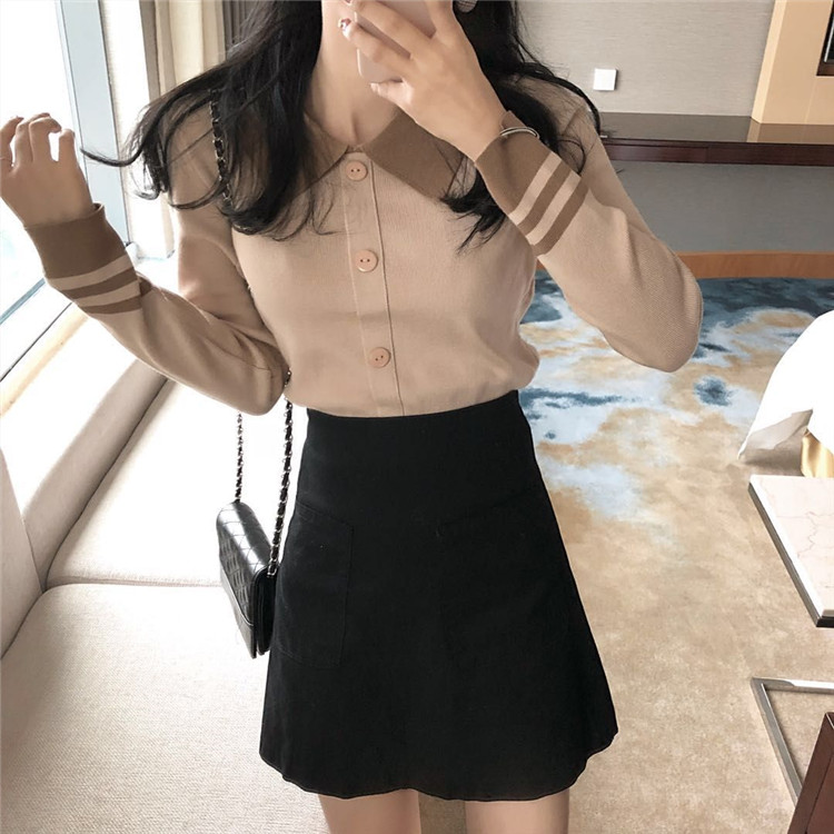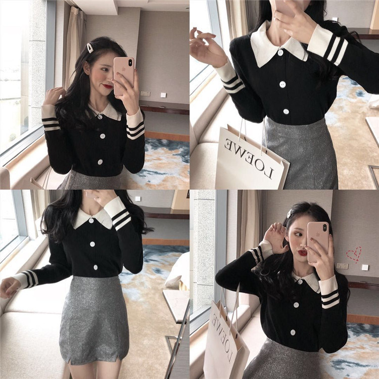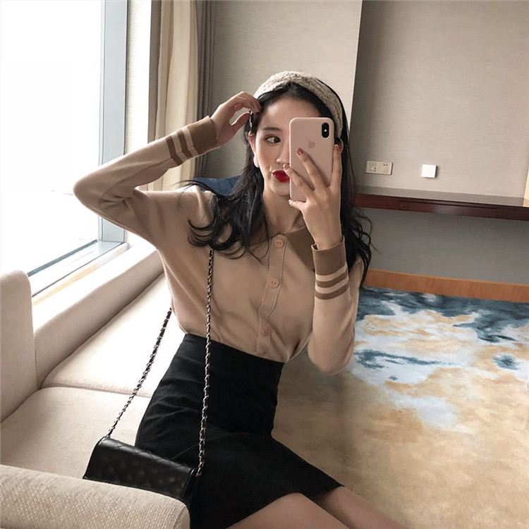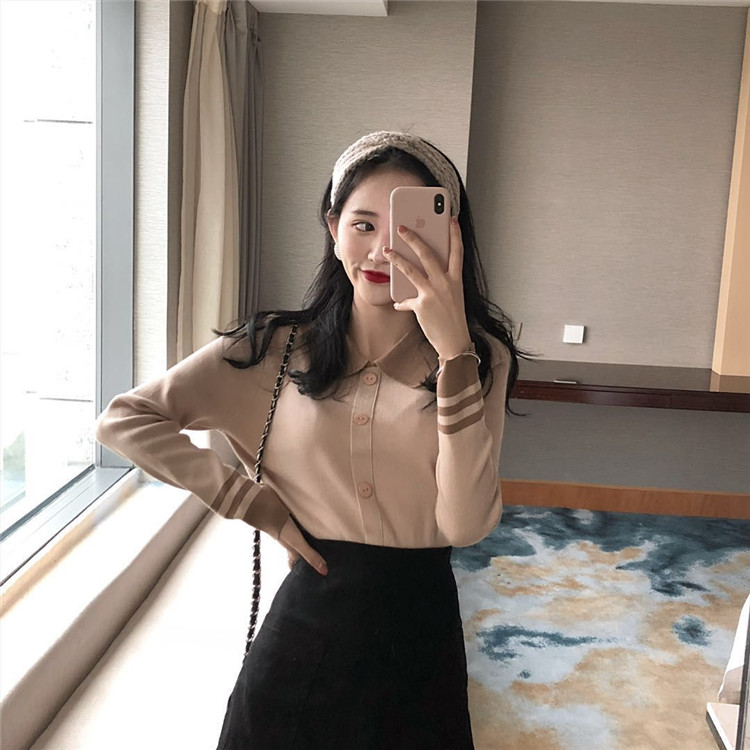 / chic早秋毛衣慵懶2018新款女紐扣套頭修身打底衫上衣長袖針織衫潮