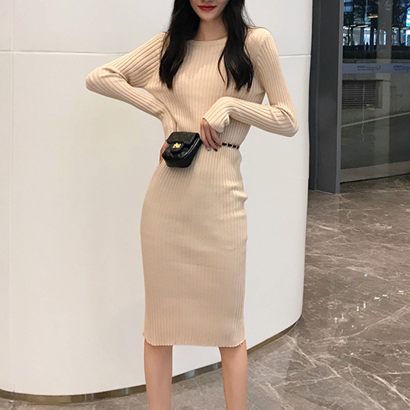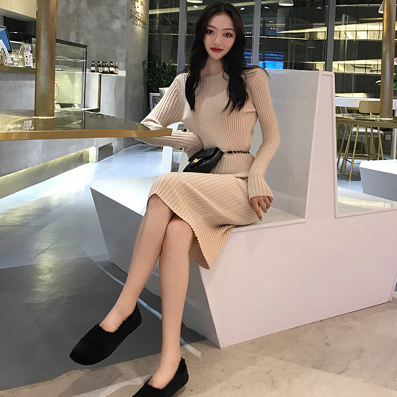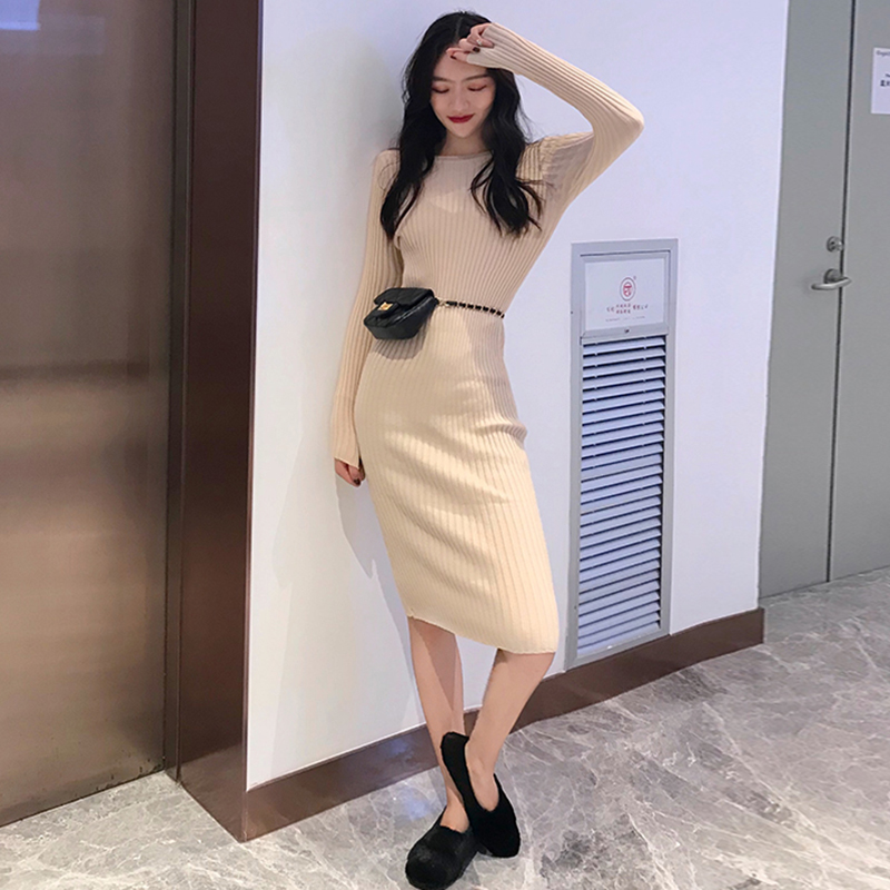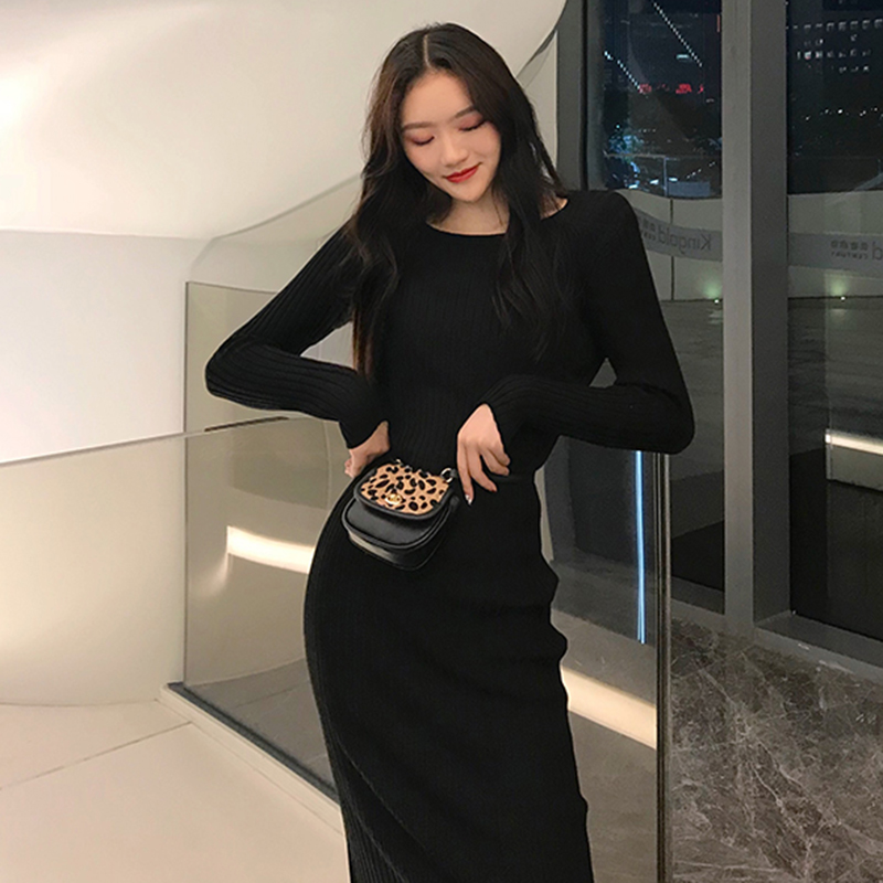 黑色中長款egg連衣裙女秋冬裝2018新款韓版修身顯瘦針織打底裙子
