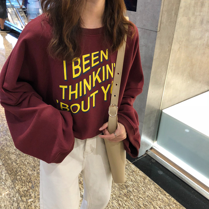時尚秋裝女2018新款韓版學生寬松開叉印花衛衣喇叭長袖圓領上衣潮