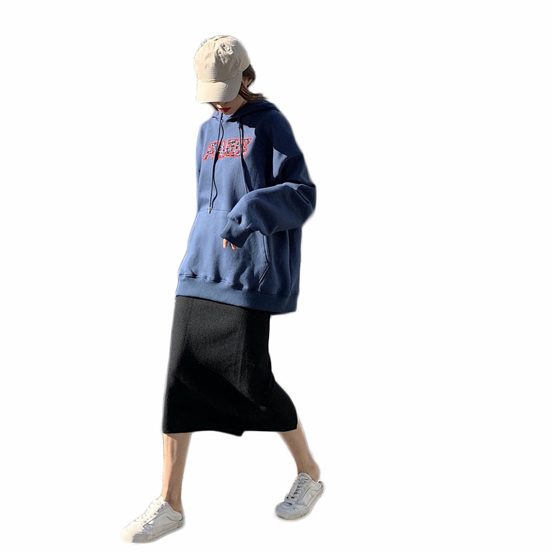 女神套裝秋冬新款寬松長袖連帽字母加絨衛衣+高腰開叉豹紋半身裙