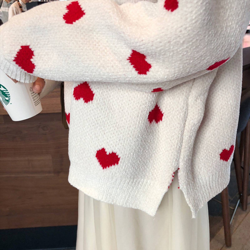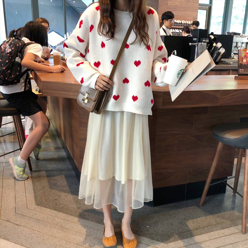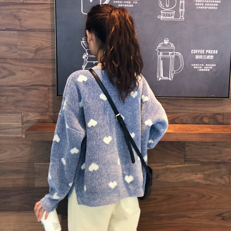 慵懶風套頭毛衣外套女秋冬裝2018新款韓版學生寬松長袖愛心針織衫