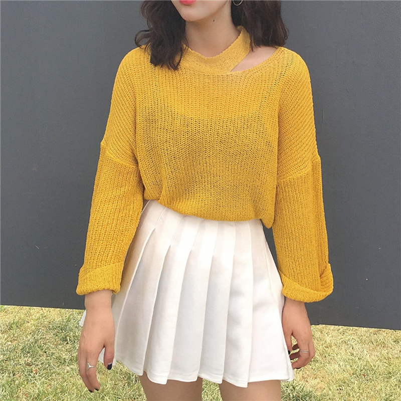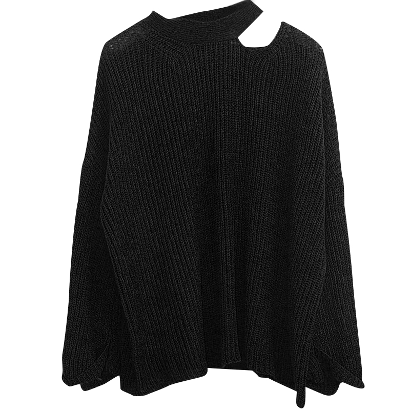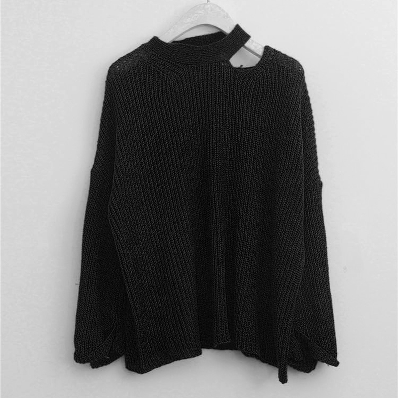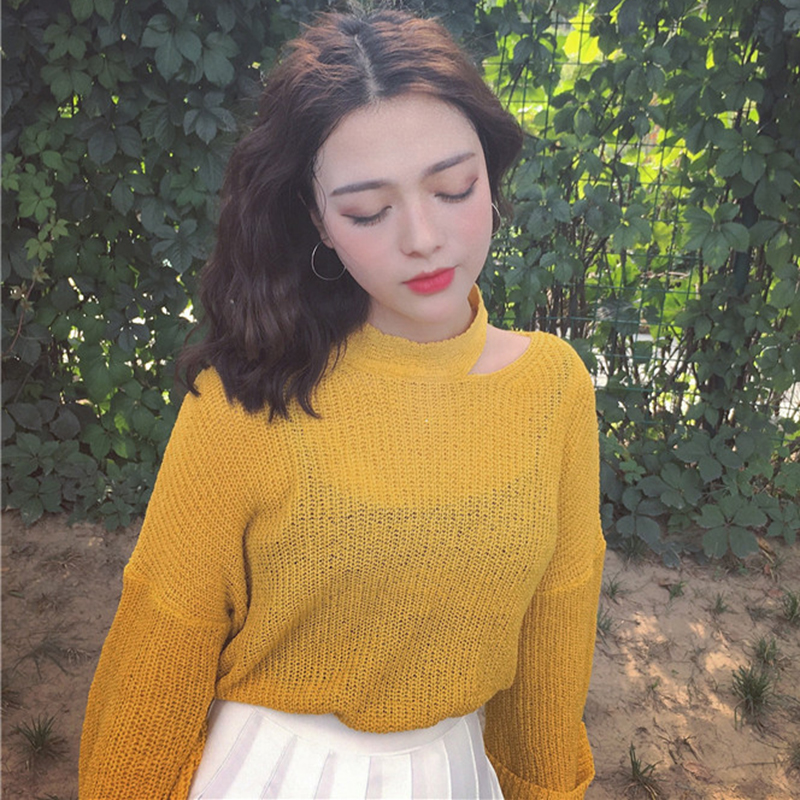 / 針織衫早秋新款韓版女裝個性鏤空套頭長袖毛衣半高領純色寬松上衣