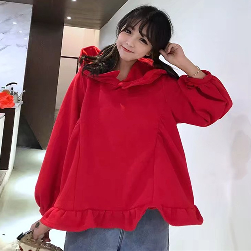 / 可愛少女泡泡長袖加絨衛衣秋冬裝2018新款學生甜美荷葉邊連帽外套