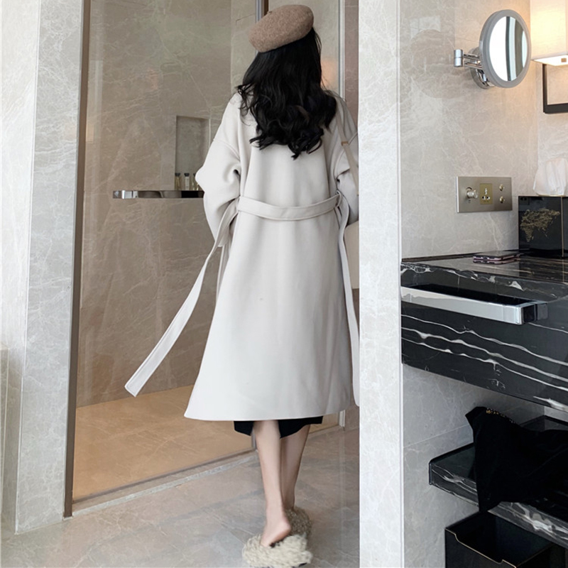 / 2018流行毛呢外套女秋冬裝新款赫本大衣純色寬松開衫學生長袖上衣