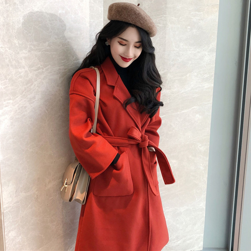 2018流行毛呢外套女秋冬裝新款赫本大衣純色寬松開衫學生長袖上衣