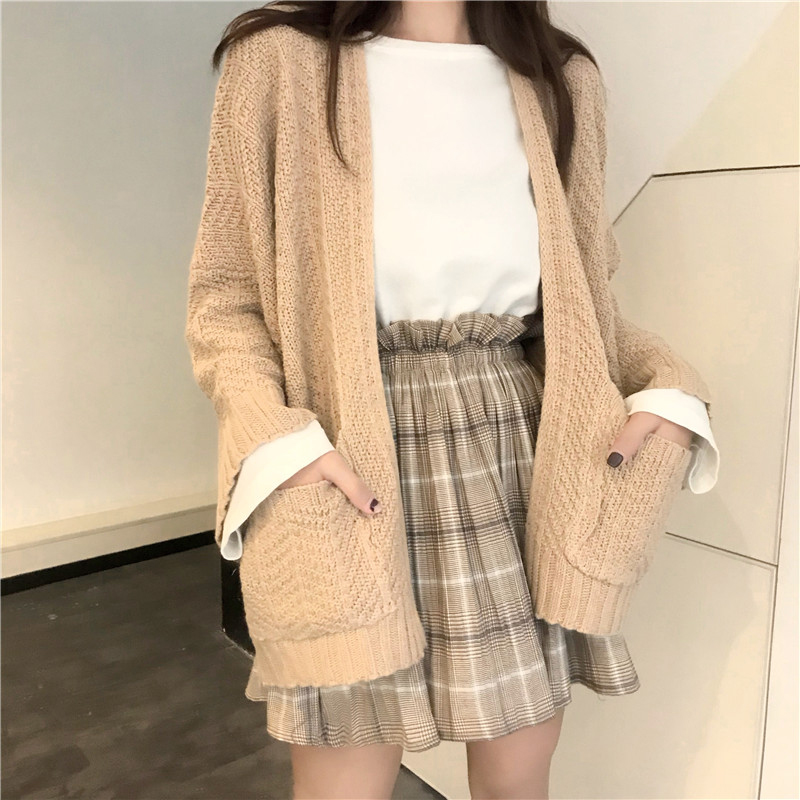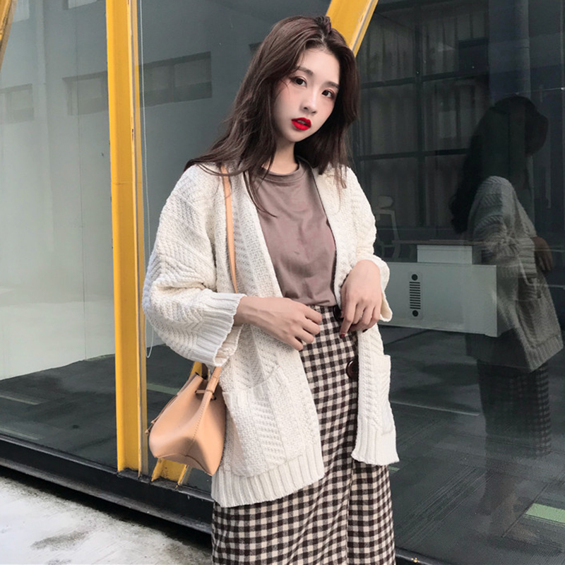 秋冬女裝2018新款慵懶毛衣時尚外套韓版寬松上衣休閑長袖針織開衫