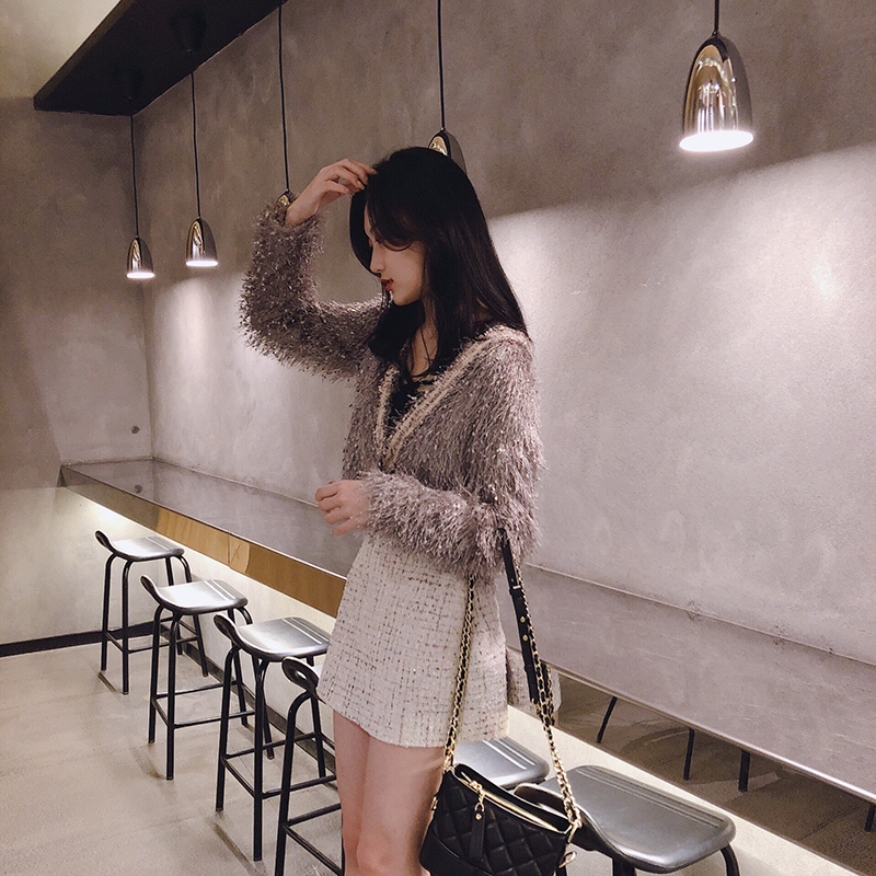 馬海毛網紅毛衣女2018新款針織開衫外套冷淡風針織吊帶連衣裙套裝