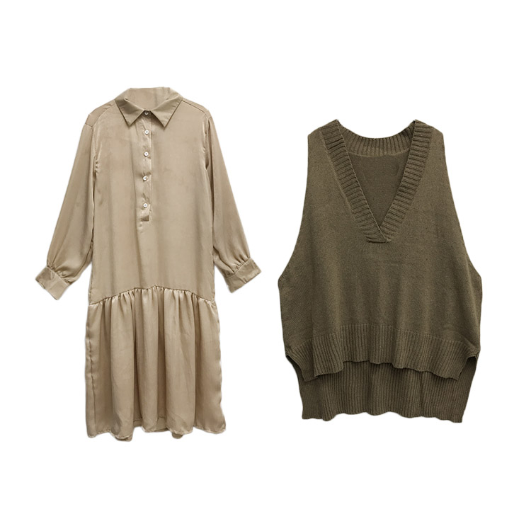 / 秋季套裝女時尚兩件套中長款襯衫連衣裙+學院風復古針織馬甲背心