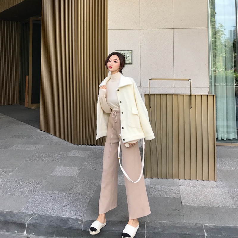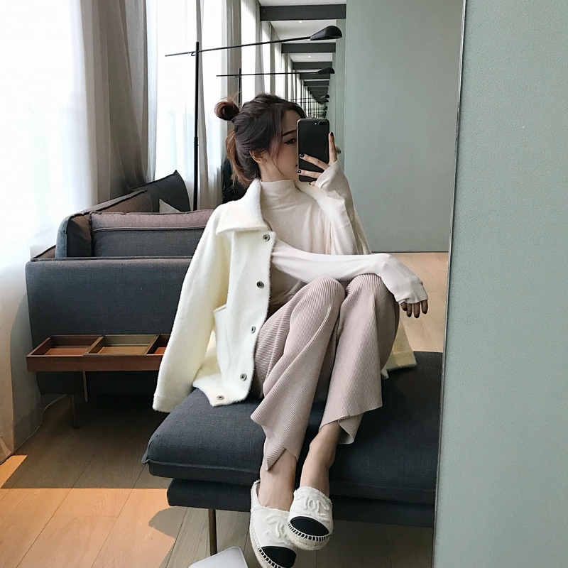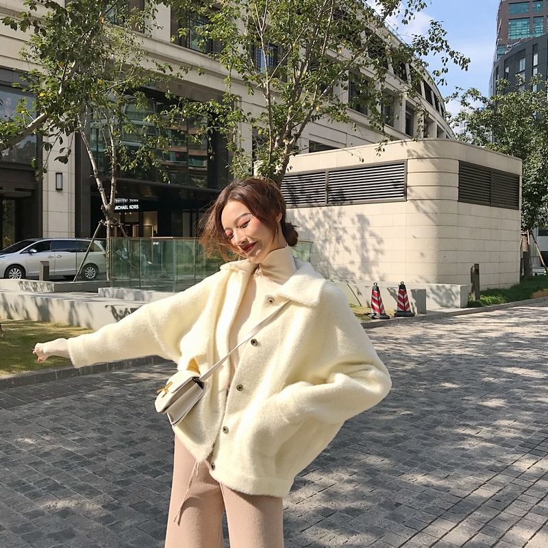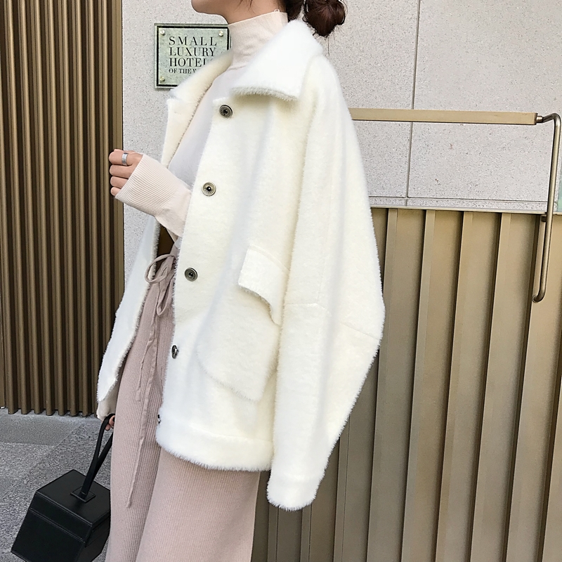 chic港風時尚網紅同款毛茸茸長袖外套女2018新款短款氣質翻領上衣