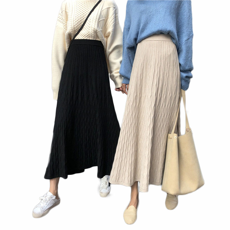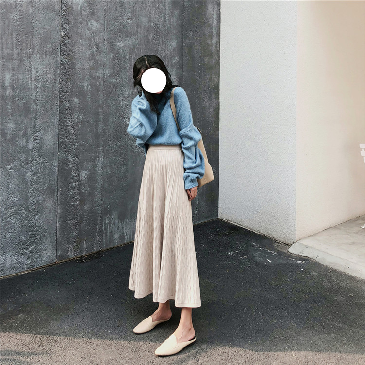 韓版慵懶風針織半身裙女秋冬2018新款百搭a字裙高腰中長款裙子潮