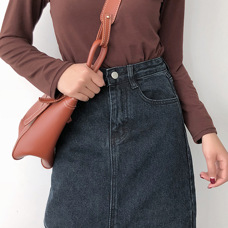 秋裝女2018新款復古港風高腰開叉牛仔半身裙學生中長A字包臀裙子