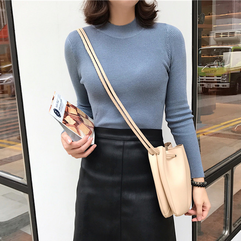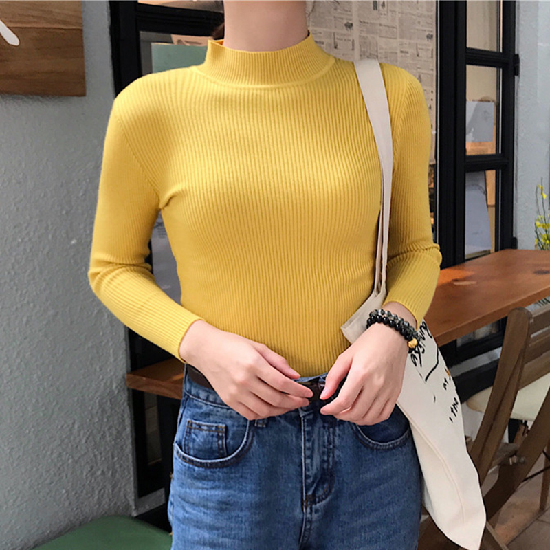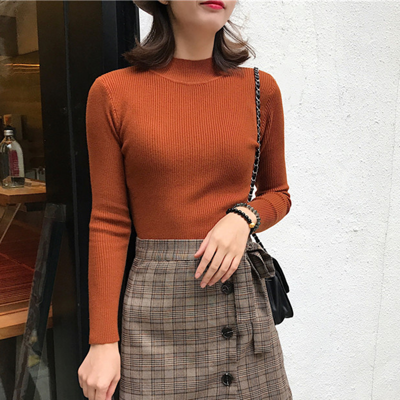 chic半高領打底薄毛衣女秋冬裝2018新款韓版氣質修身長袖針織衫潮