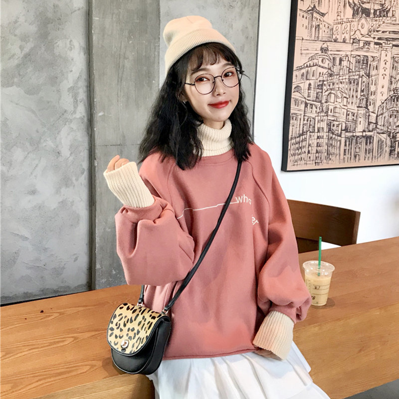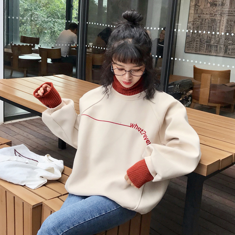 衛衣2018新款女長袖 韓版 寬松 高領假兩件上衣女 毛呢厚衛衣女冬