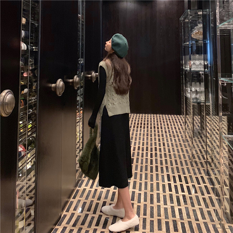 抹茶綠馬甲|杏色馬甲|杏色打底|黑色打底|杏色裙子|黑色裙子