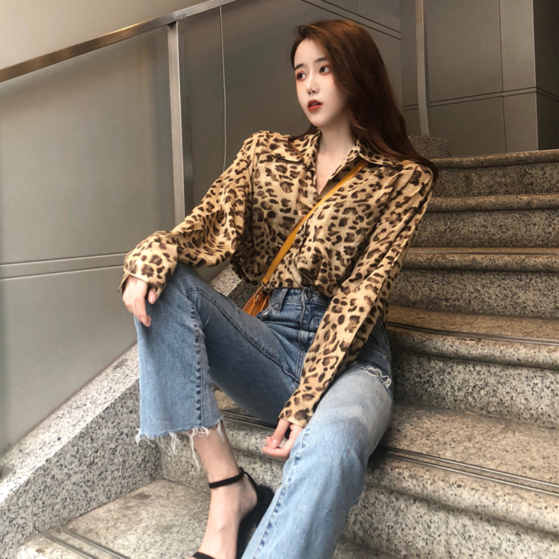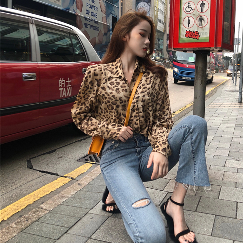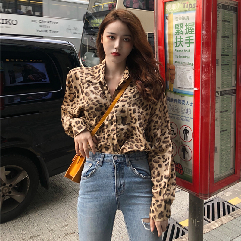 / 慵懶時尚豹紋襯衫女2018新款秋裝復古寬松長袖上衣休閑中長外套潮