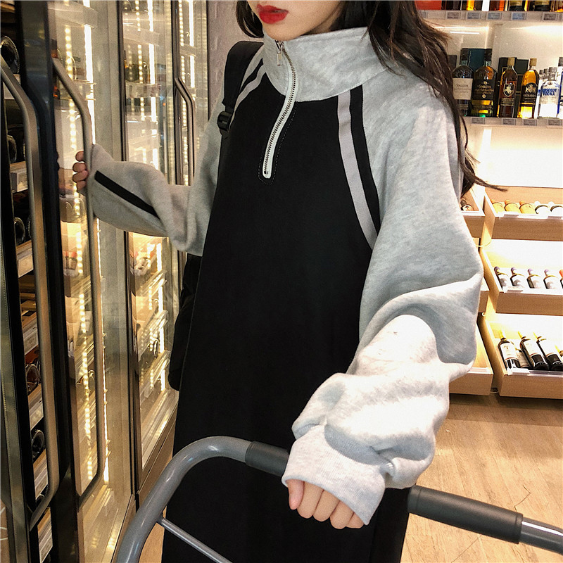 / 慵懶風加絨衛衣裙秋冬女裝2018新款韓版學生長袖連衣裙子拼色長裙