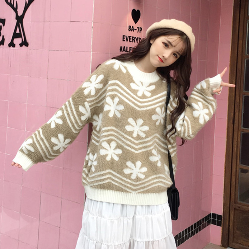 小清新雪花瓣毛衣外套女秋冬裝2018新款韓版學生寬松套頭針織衫潮