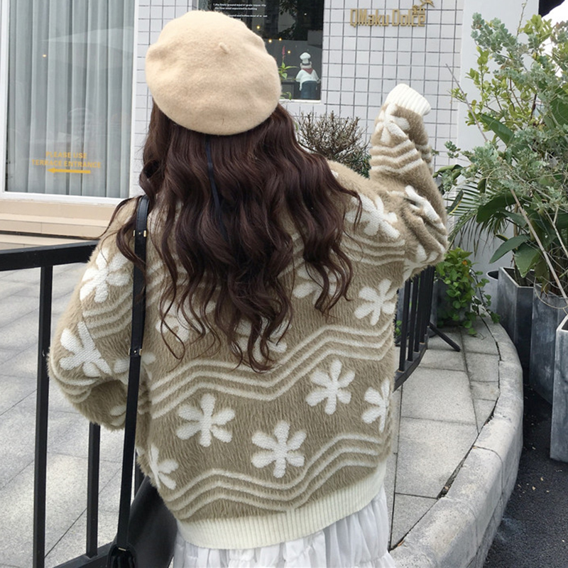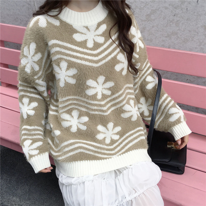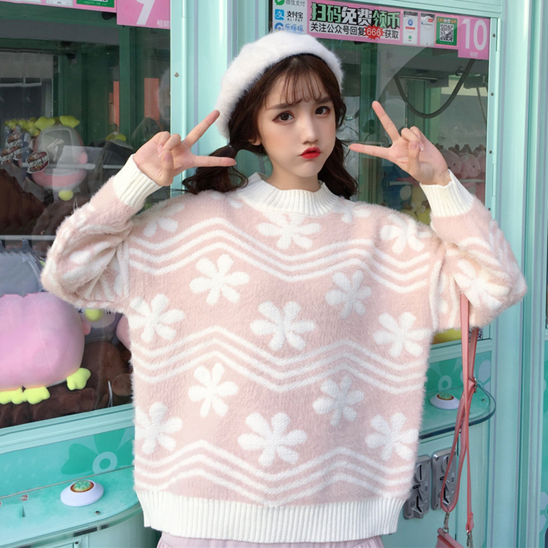 / 小清新雪花瓣毛衣外套女秋冬裝2018新款韓版學生寬松套頭針織衫潮