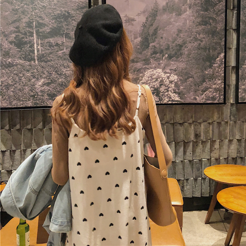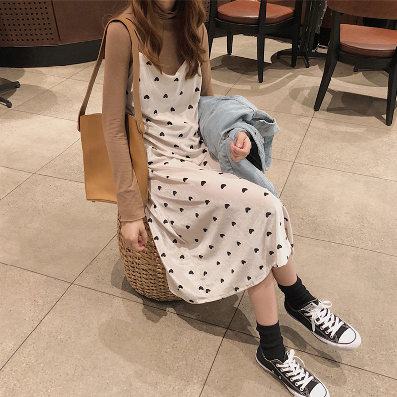 / 韓版甜美愛心吊帶連衣裙子女秋冬裝新款學生復古風絲絨egg中長裙