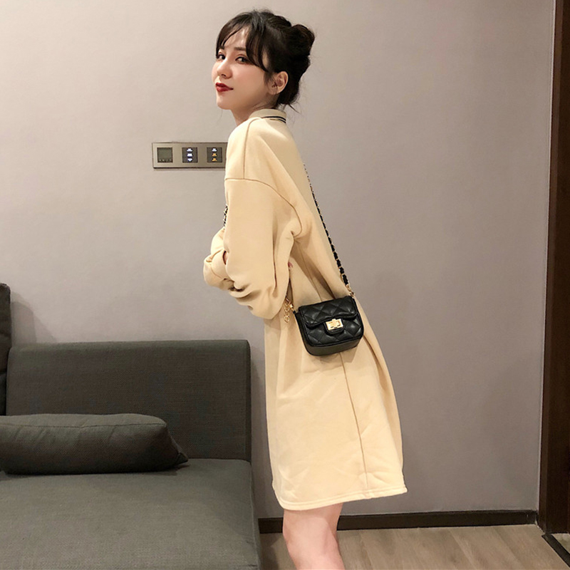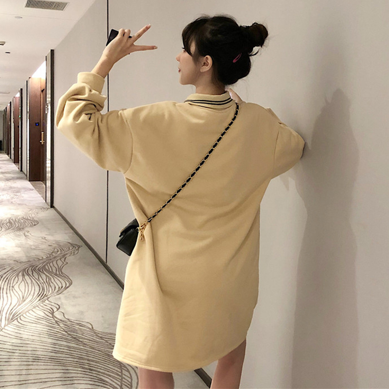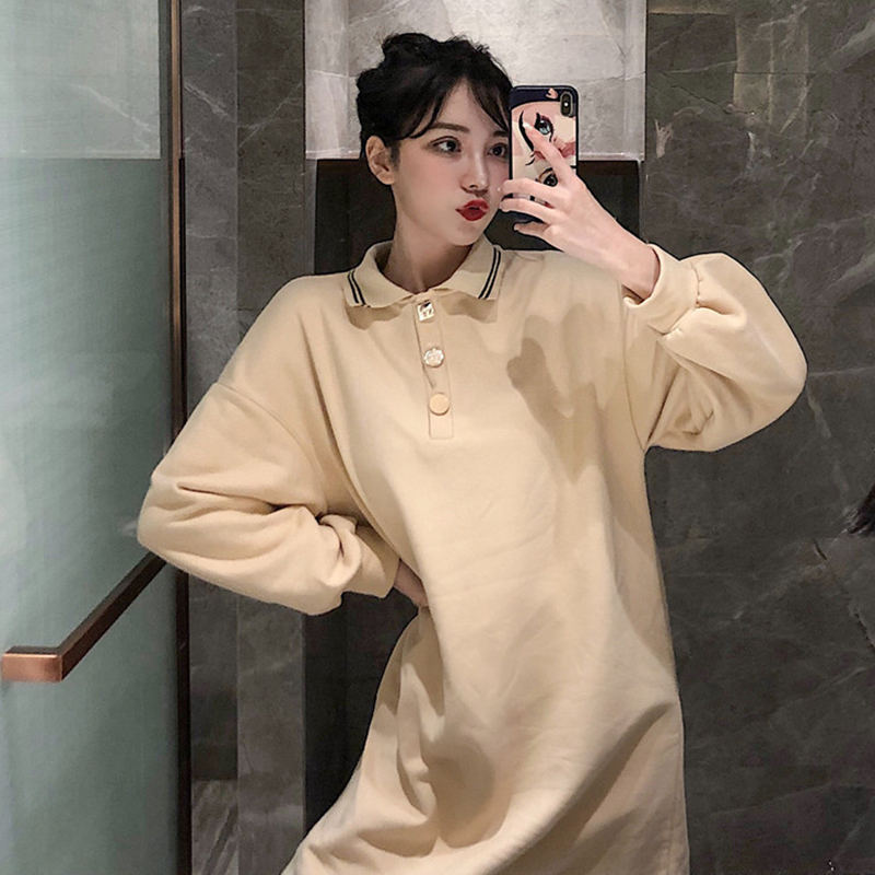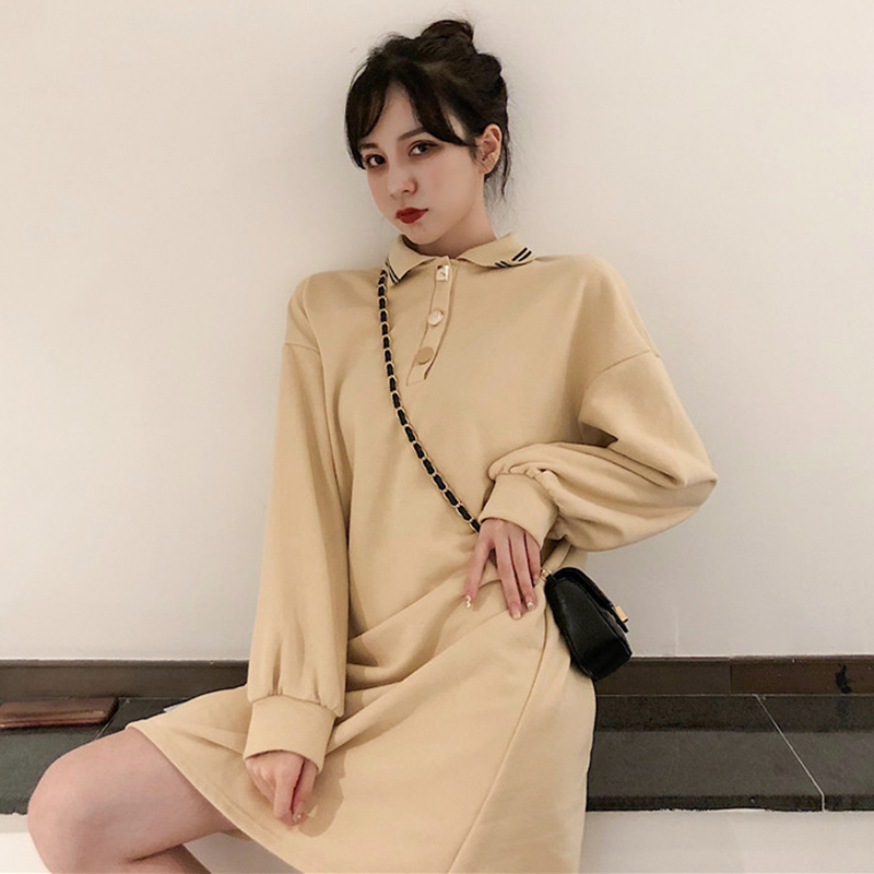 eeg風法系少女桔梗裙秋冬裝2018新款韓版寬松polo領長袖連衣裙子