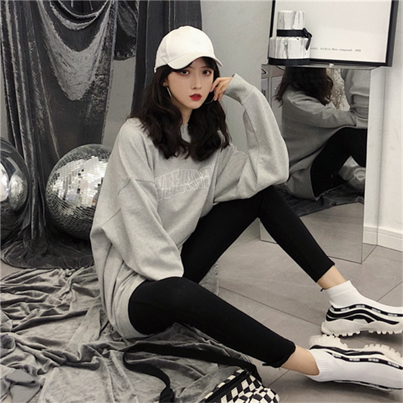 時尚百搭遮臀繡花字母套頭衛衣2018新款女長袖韓版寬松顯瘦上衣潮