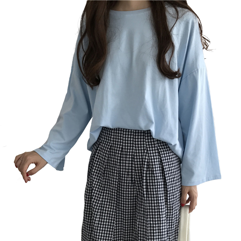 / 港味復古上衣秋裝新款女裝寬松休閑簡約學生休閑長袖T恤打底衫潮