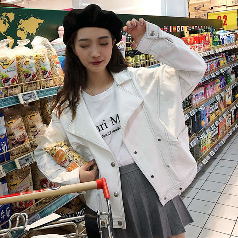 / 秋季韓版牛仔短外套2018新款女裝學生休閑寬松純色長袖夾克上衣潮