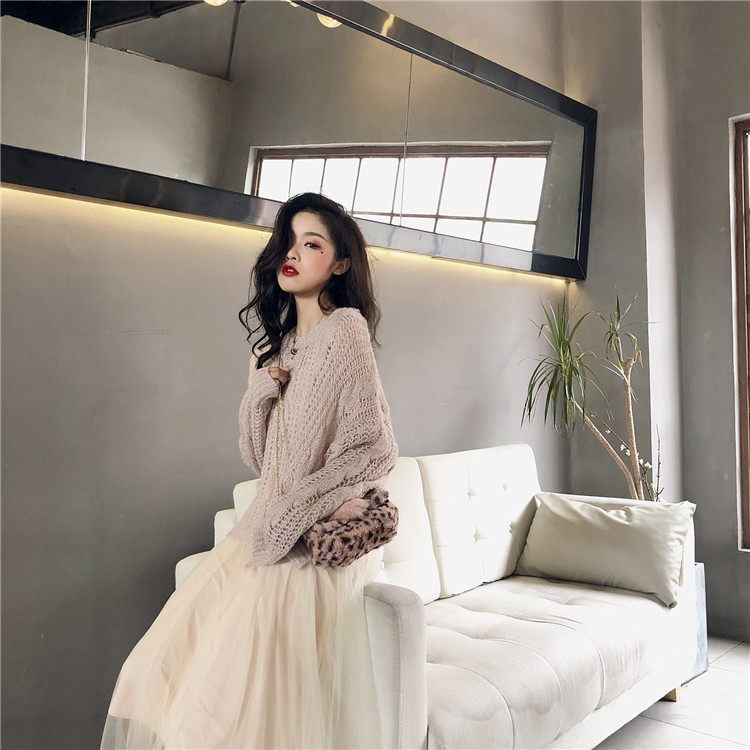 / 秋季溫柔仙女麻花慵懶寬松網紅毛衣+背心連衣蓬蓬紗裙半身裙套裝