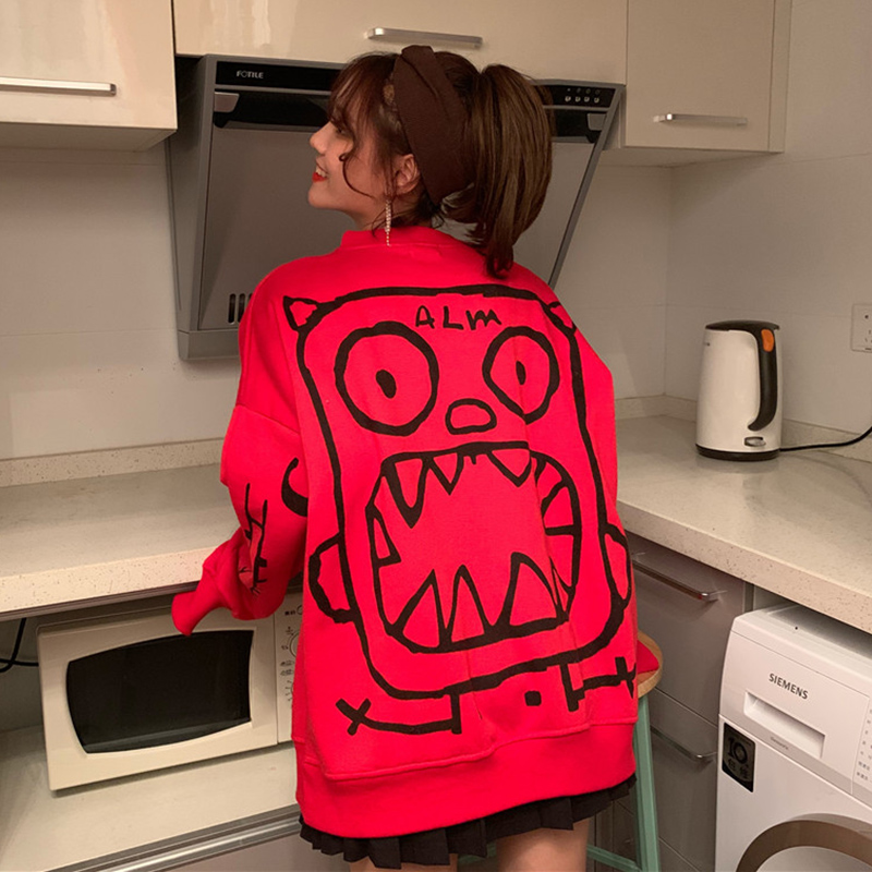 / 秋冬女裝新款卡通印花加絨長袖保暖衛衣韓版chic學生寬松慵懶上衣