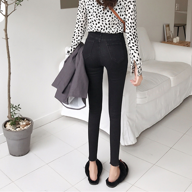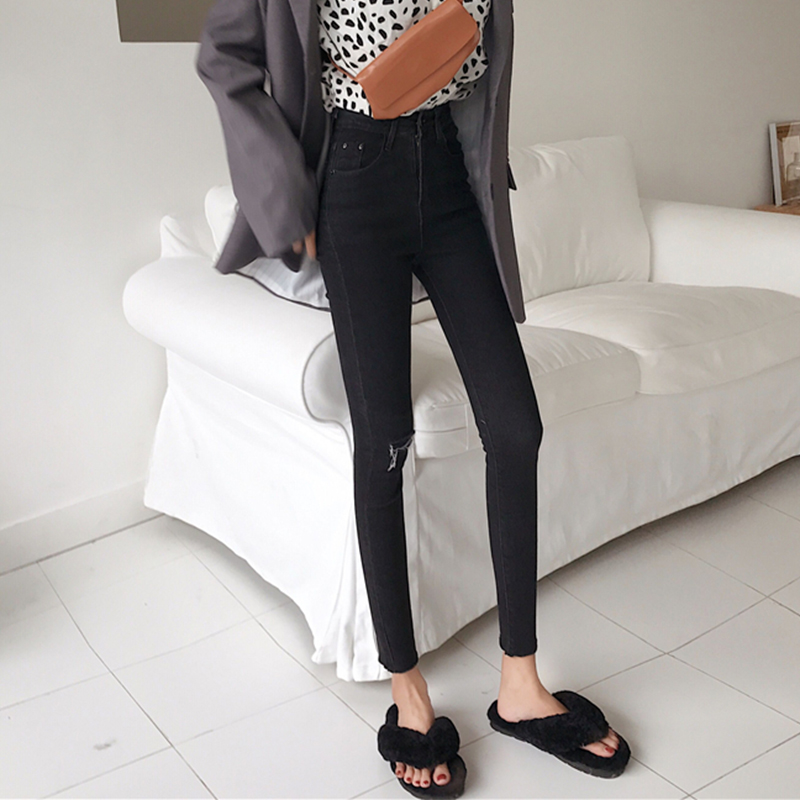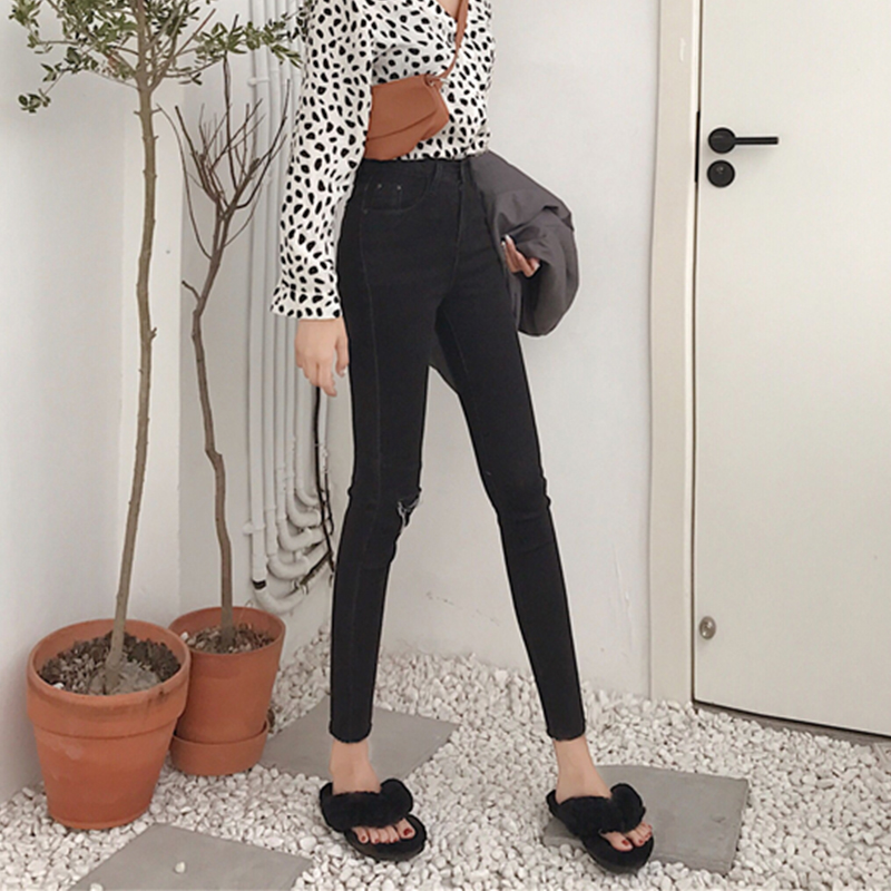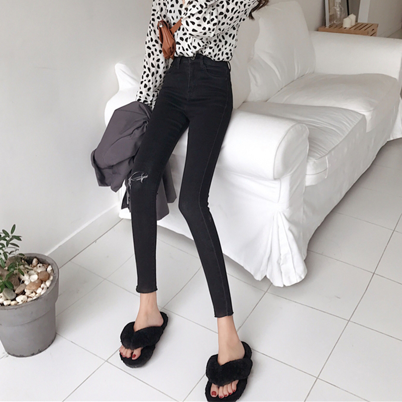 / 破洞牛仔小腳褲女秋冬裝2018新款韓版高腰彈力鉛筆褲修身顯瘦長褲