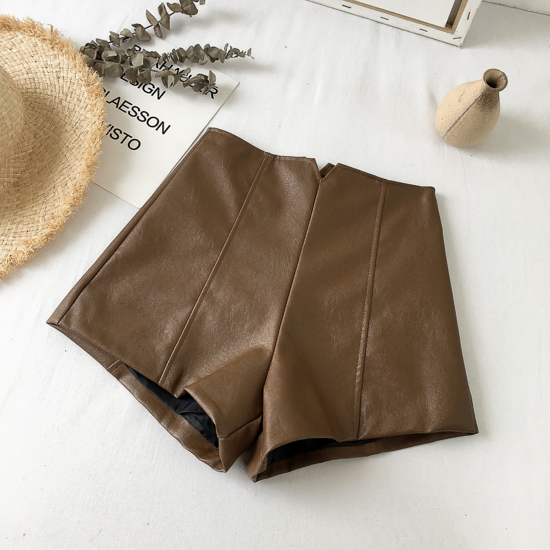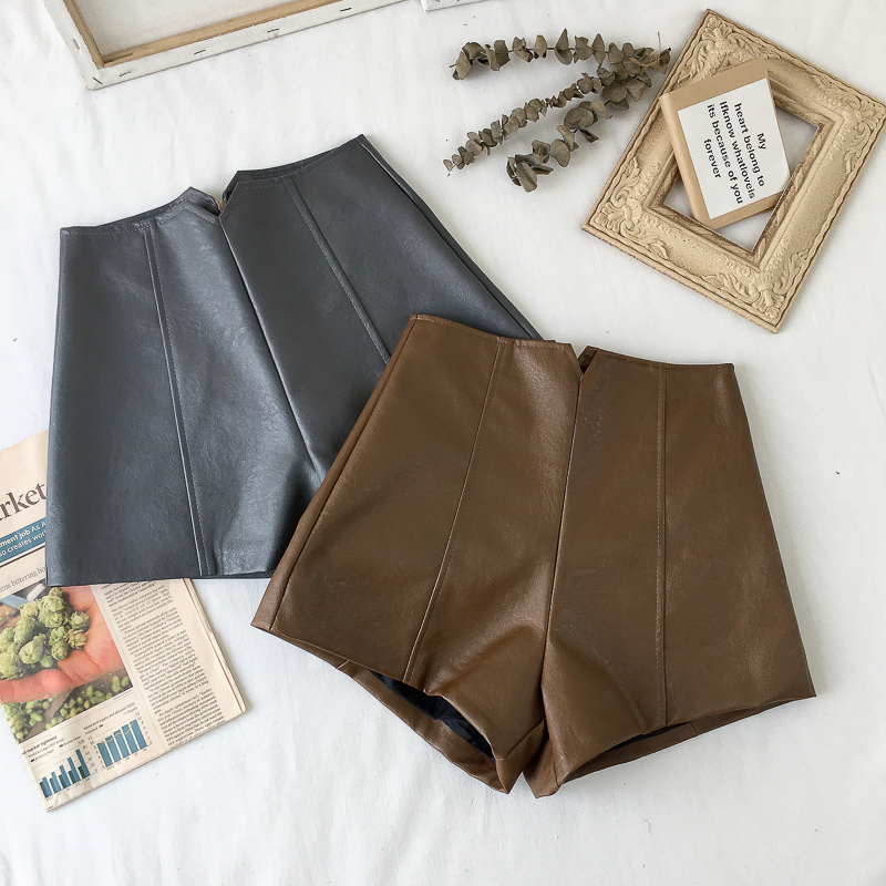 秋裝女2018新款時尚韓版chic風百搭洗水PU皮褲高腰顯瘦外穿短褲潮