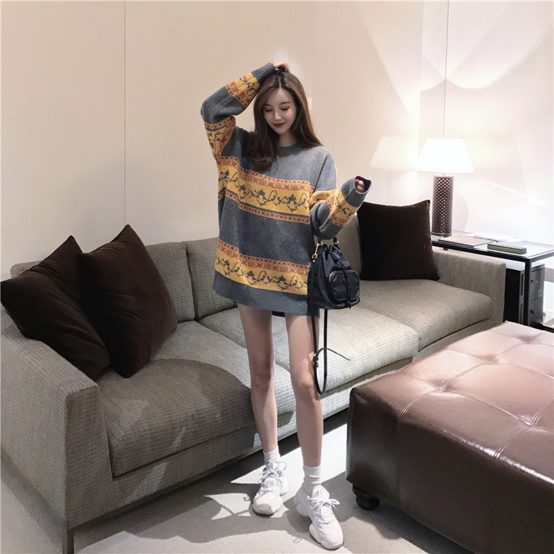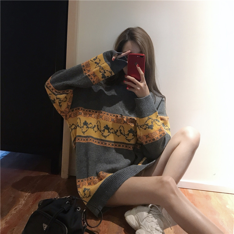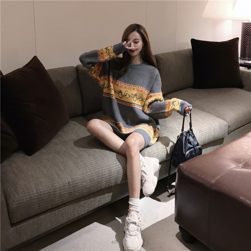/ 港味秋裝2018新款復古百搭慵懶風毛衣女寬松中長款長袖毛衣外套潮