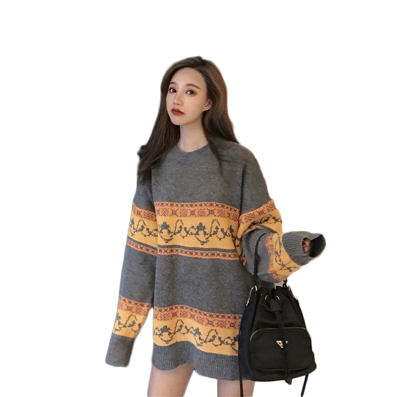 韓版百搭慵懶風毛衣女2018新款寬松oversize條紋中長款毛線上衣潮