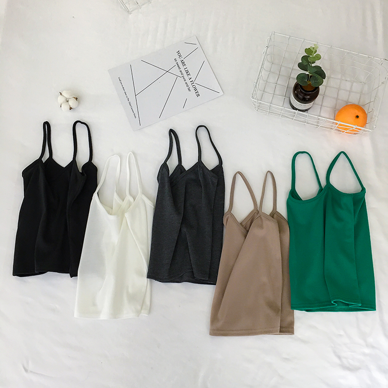 2018夏季新款韓版簡約百搭針織吊帶背心雙肩帶修身純色打底衫女