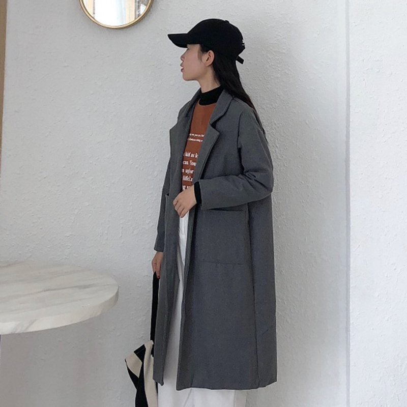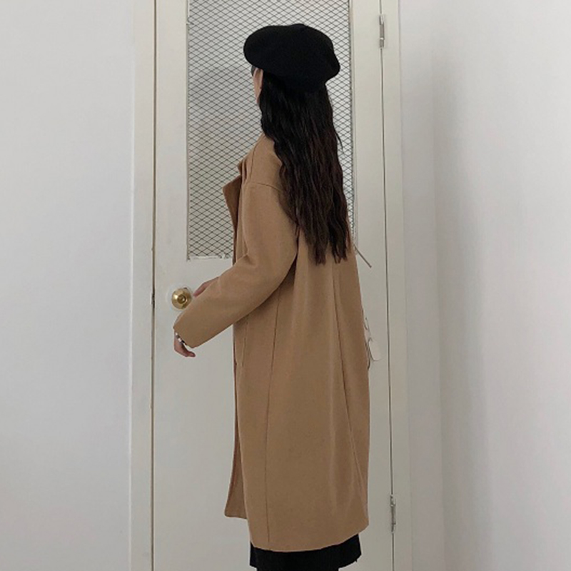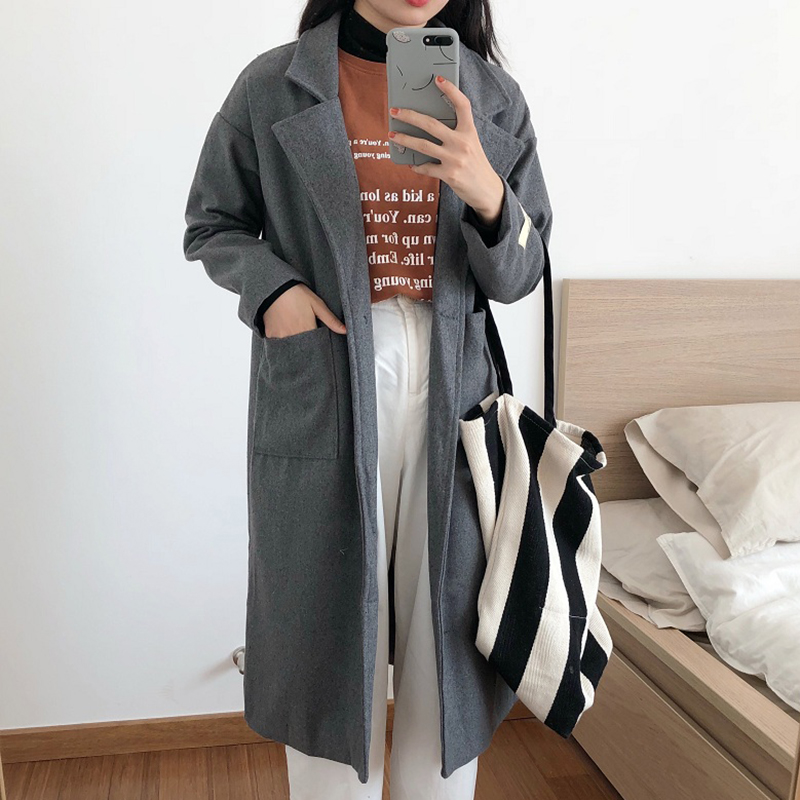 復古風西裝領毛呢大衣女秋裝新款學生中長款外套寬松長袖休閑上衣