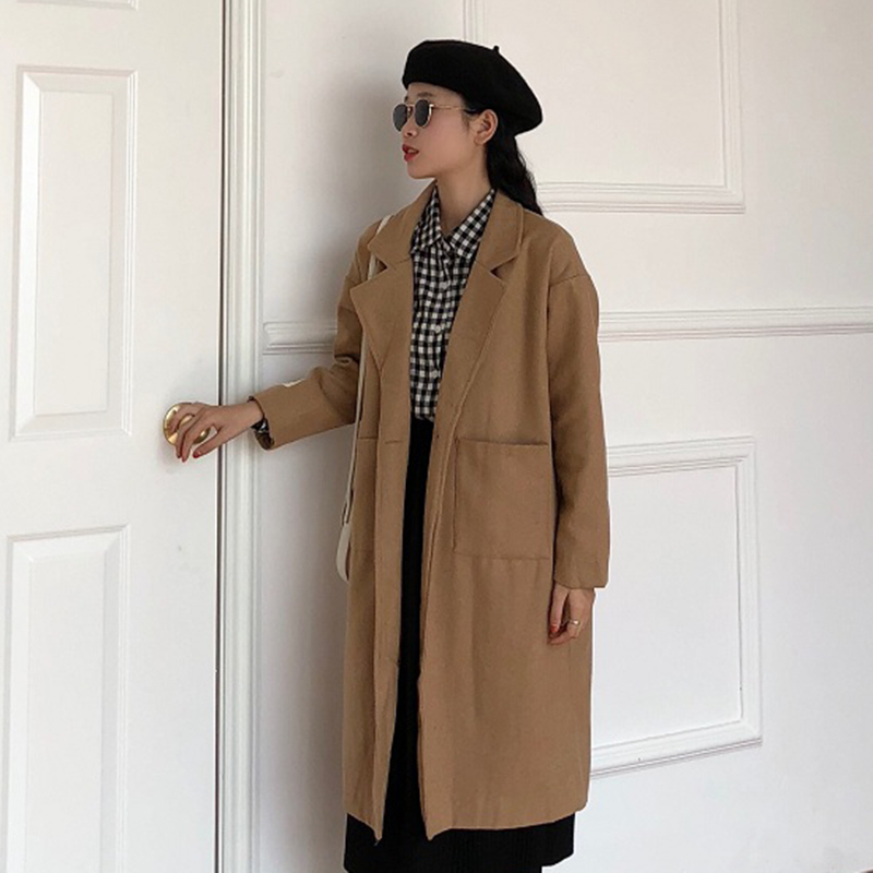 / 復古風西裝領毛呢大衣女秋裝新款學生中長款外套寬松長袖休閑上衣