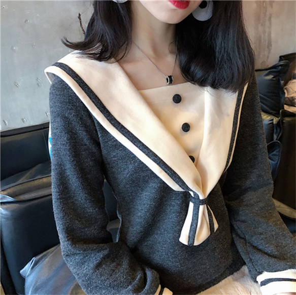 chic早秋裙子長裙女慵懶風秋裝女2018新款時尚水手服打底連衣裙潮