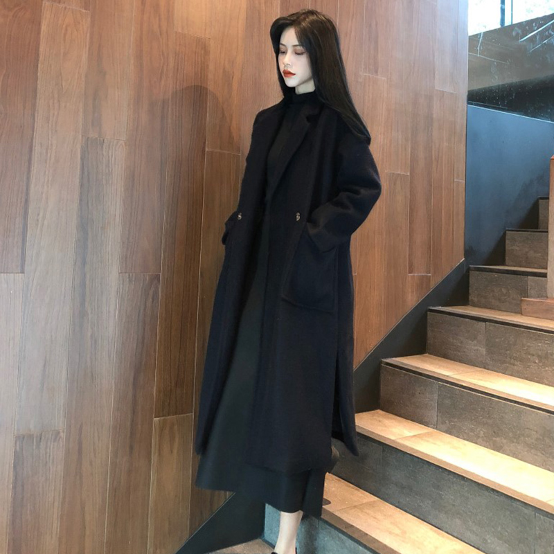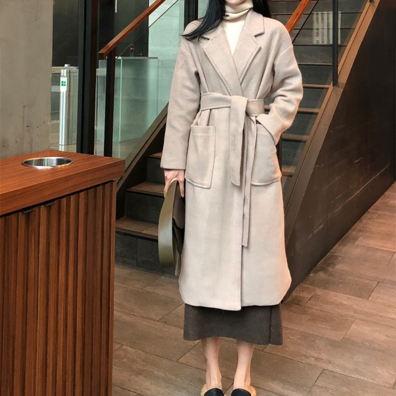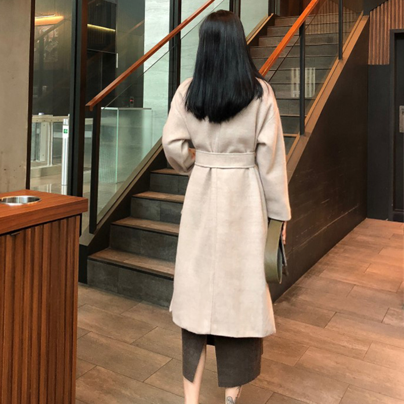 / 復古純色中長款毛呢外套秋冬女裝2018新款系帶收腰呢大衣長袖上衣