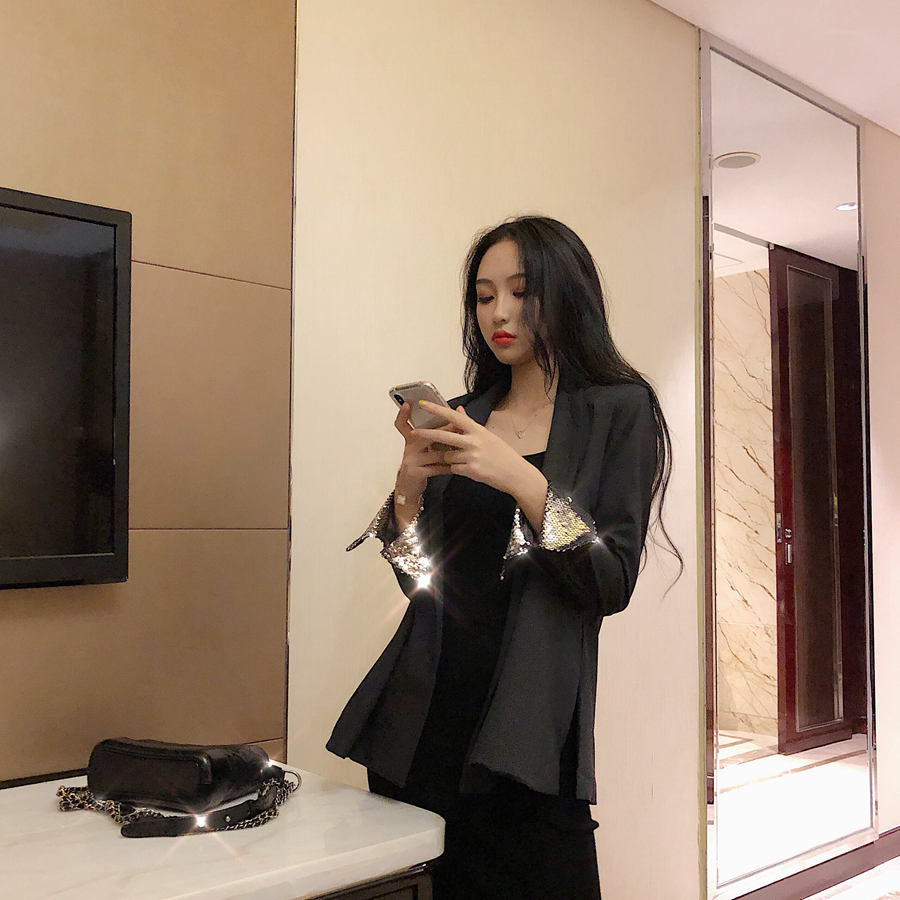 / 港味時尚復古風秋裝女2018新款高冷氣質bulingbuling袖小西裝外套
