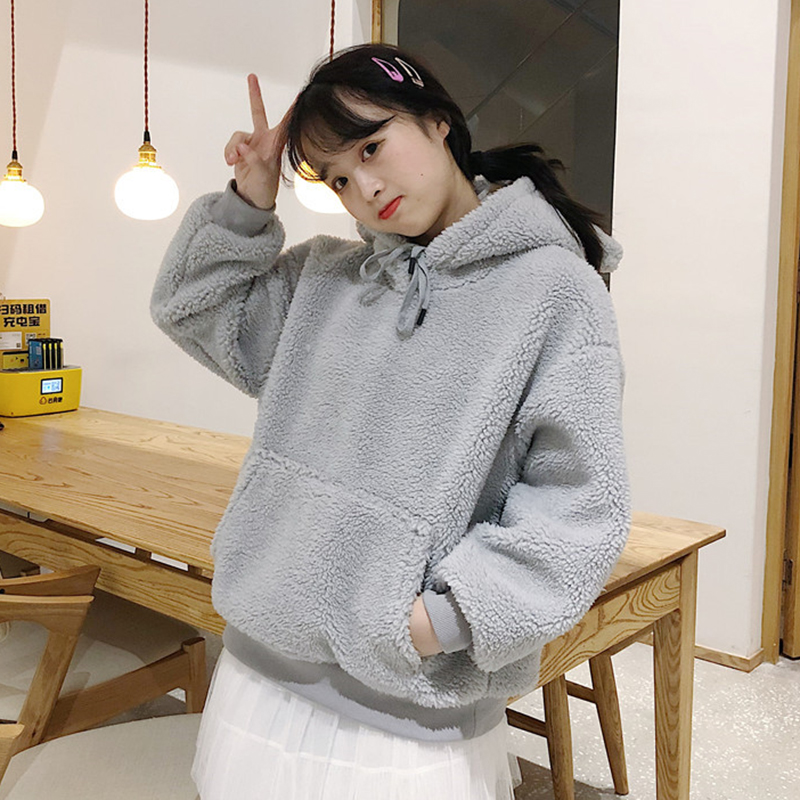 可愛少女連帽衛衣2018冬裝新款韓版學生寬松加厚羊羔毛上衣外套潮