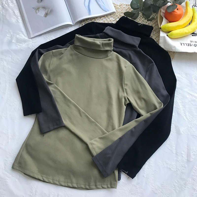 學生高領打底衫女冬裝2018新款韓版修身顯瘦純色內搭長袖T恤上衣